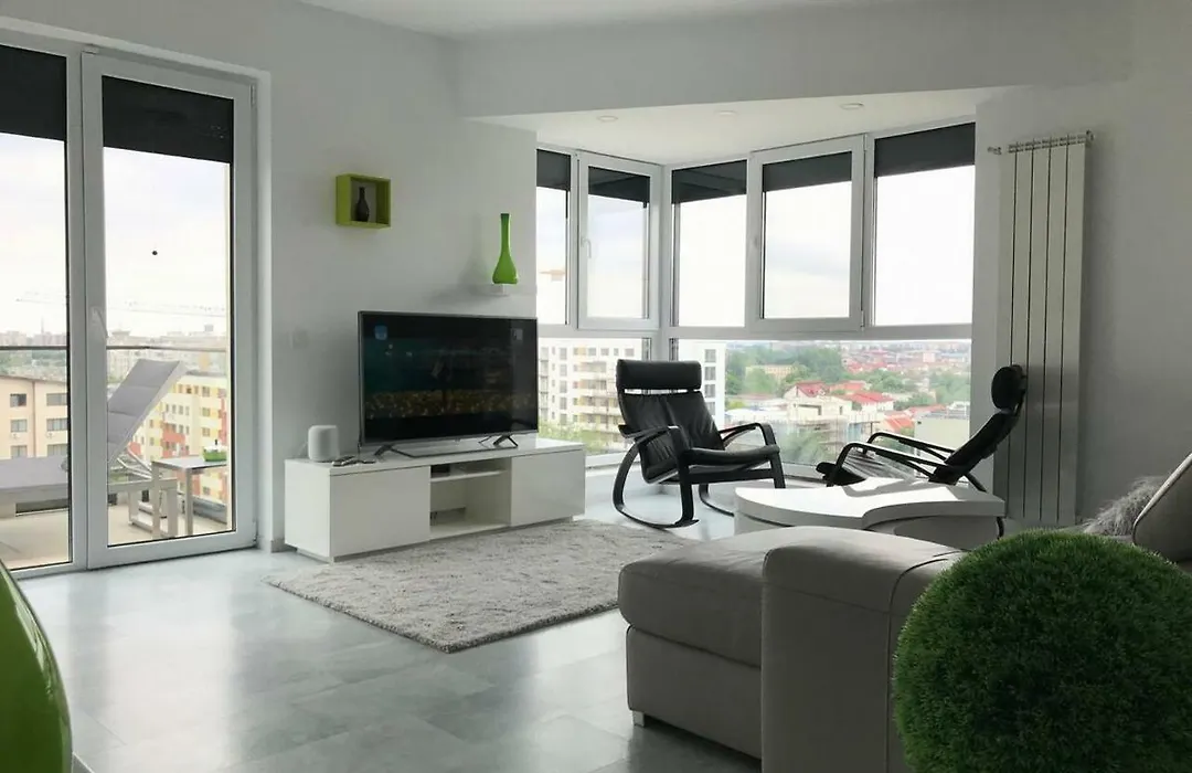 Továbbá van mikrohullámú sütő, mosogatógép és mosógép a konyhában.A Henri Coanda nemzetkozi repuloter repülőtér mindössze egy 20 perces autókázásra van.